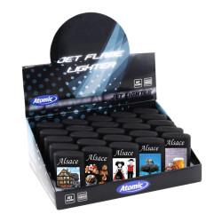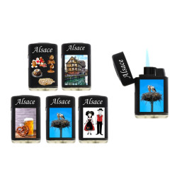 Briquet Atomic jet flamme gomme noire décors Alsace