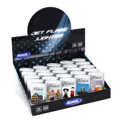 Briquet Atomic jet flamme gomme argentée décors Alsace